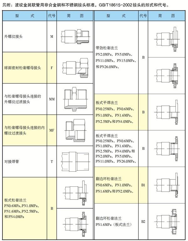 波紋金屬軟管標(biāo)準(zhǔn)接頭型式和代號(hào)